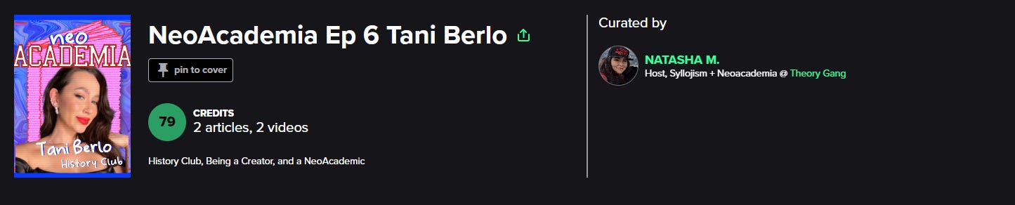 Readocracy is NeoAcademia’s first sponsor, and I highly encourage you to sign up for an account. I have been using it daily for years now, and I even include some of my personal metrics in my monthly Rabbithole newsletter for my paid subscribers. It’s a fun way of reflecting on what you consume, and potentially building your expertise as a NeoAcademic.